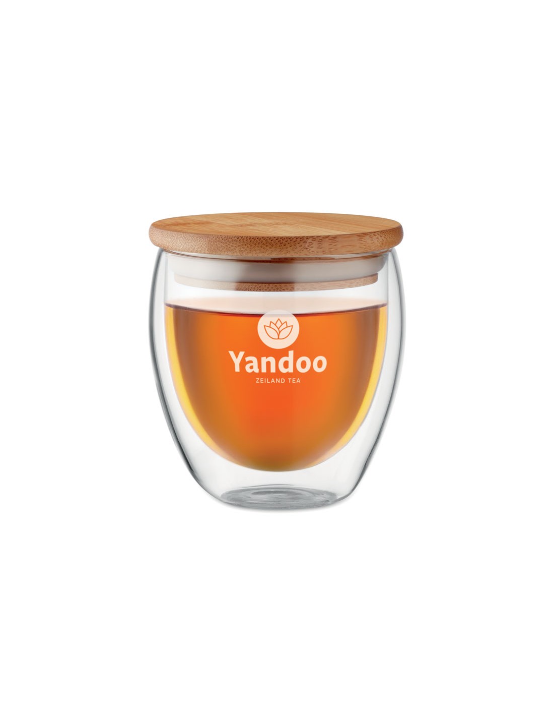 Vasos pequeños de cristal promocionales realizados en borosilicato ultra resistente con capacidad de 250 ml de líquido. Tienen doble pared que contribuye a mantener la temperatura del líquido y la resistencia del vaso. Su tapa, hecha en bambú ecológico, hace que puedas transportar cualquier bebida sin riesgo a derrames ni caídas del líquido. Para que la tapa no se mueva cuenta con una junta de silicona que la fija perfectamente. Estos vasos son ideales para promocionarte en ferias temáticas añadiendo tu logo y regalándolos a los asistentes. Disponibles en color transparentes. Material: Cristal, bambú y silicona Medidas: 9,5 x 14,5 cm Peso: 178 g