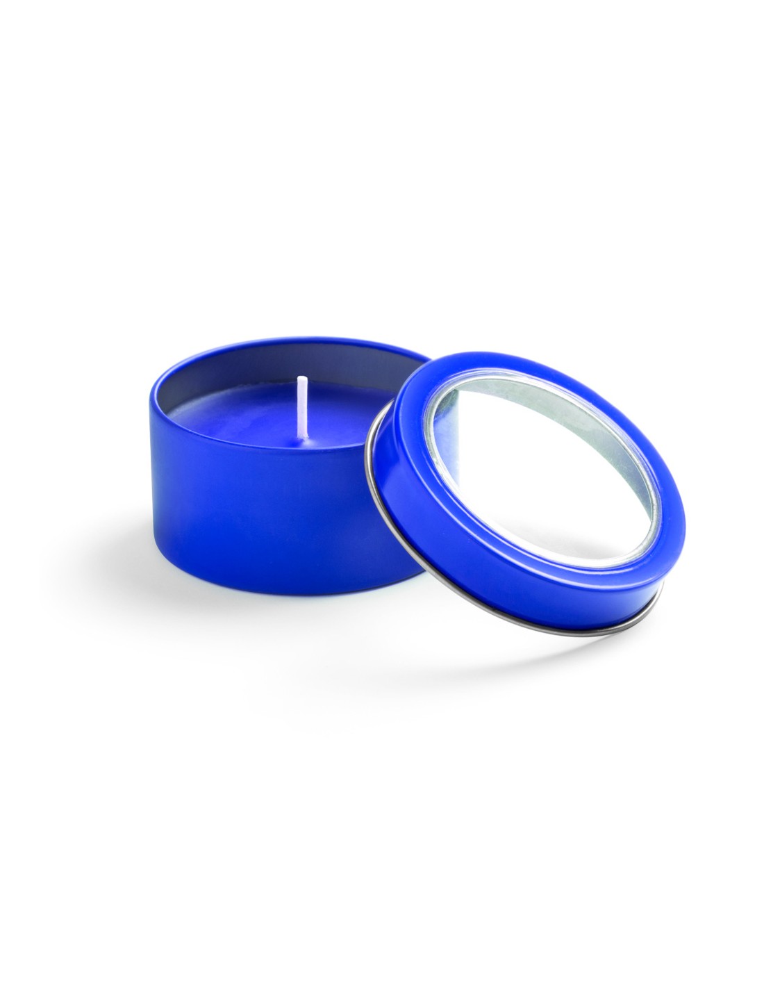 Velas de vainilla en un tarro metálico con una ventana transparente. Disponibles en más de 7 colores