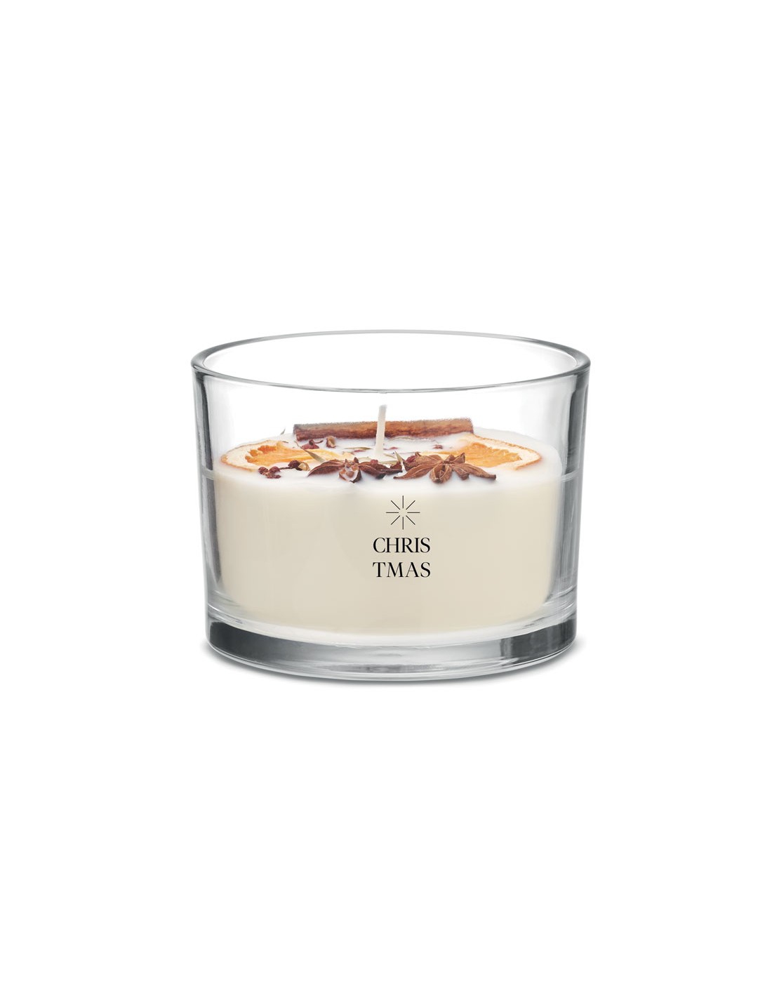 Vela de cera vegetal con fragancia a canela y cítricos, con flores y frutos secos, en tarro de cristal. 300 gr. Tiempo de combustión: 50 horas.